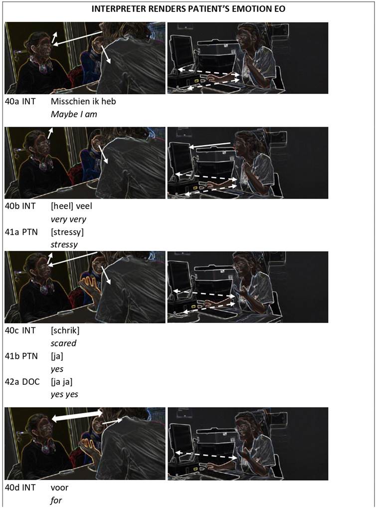 The results of the level 1 analysis served as the context in which we looked into participants’ nonverbal concurrent (inter)actions when the patient expressed the emotion EO and the doctor responded to it through an interpreter.
