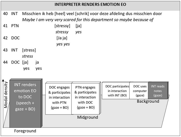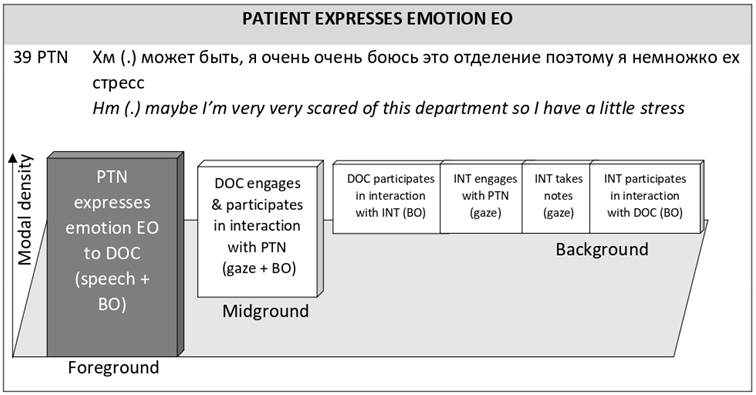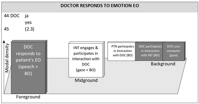 Figure 7: Modal density foreground–background continuum for EC doctor responds to patient’s emotion EO and interpreter omits doctor’s empathic response