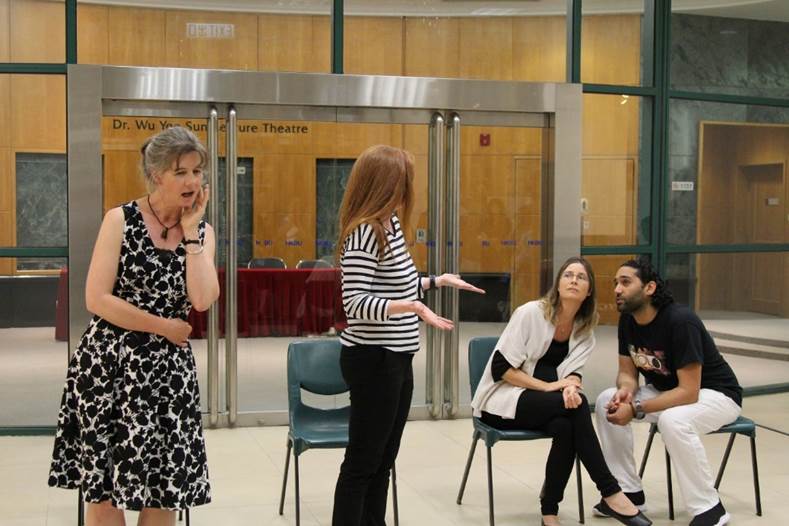 Este acto de traducir la propia experiencia, emociones e ideas en una actuación sobre el escenario se parecía mucho a lo que había experimentado yo en Hong Kong cuando me pidieron que representara algo que suelo hacer y en lo que pienso todo el tiempo: estar inmersa con artistas y académicos en un espacio donde la ficción y la realidad se confunden para crear historias. Searching for the translator buscaba, pues, esbozar al “traductor” para brindar al personaje la autenticidad de las experiencias vividas en el conflicto y en el exilio.